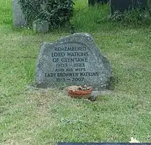 Lord Watkins died on 2 November 1983. He was cremated and his ashes buried in the churchyard of St David's Church, Llanfaes, Brecon. His wife's ashes are also buried there. His papers are in the holdings of the National Library of Wales.[3]