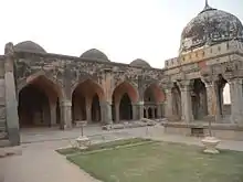 Firuz Shah suffered from bodily infirmities, and his rule was considered by his court historians as more merciful than that of Muhammad bin Tughlaq.[64] When Firuz Shah came to power, India was suffering from a collapsed economy, abandoned villages and towns, and frequent famines. He undertook many infrastructure projects including an irrigation canals connecting Yamuna-Ghaggar and Yamuna-Sutlej rivers, bridges, madrasas (religious schools), mosques and other Islamic buildings.[2] Firuz Shah Tughlaq is credited with patronizing Indo-Islamic architecture, including the installation of lats (ancient Hindu and Buddhist pillars) near mosques. The irrigation canals continued to be in use through the 19th century.[64] After Feroz died in 1388, the Tughlaq dynasty's power continued to fade, and no more able leaders came to the throne. Firoz Shah Tughlaq's death created anarchy and disintegration of kingdom. In the years preceding his death, internecine strife among his descendants had already erupted.[2]