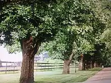 A key landscape element is the driveway, which is lined with an avenue of 51 Elms down each side. They are mature from the gates through to the 28th tree, and semi-mature after that indicating two stages of planting. The size of the more mature specimens suggests an original planting date of around 1900. About 10 of the trees are recent in-fill sapling plantings. Other related landscape elements are a number of cypresses (Cupressus Macrocarpa) which appear to have been planted in the early twentieth century as a wind-break, and there are more mature Cypress windbreaks in the surrounding paddocks. These vary in maturity and appear to date from the early to mid-twentieth century.