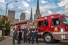 The Tulsa Fire Department was founded as a volunteer fire department on June 6, 1900, following a fire that broke out in Downtown Tulsa, Oklahoma in 1897.[2] The Tulsa Fire Department headquarters is located at 1760 Newblock Park Drive. The department celebrated its 120th anniversary in June 2020.