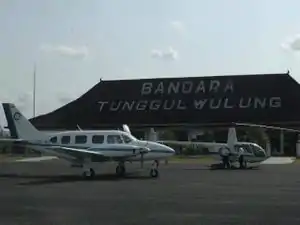 Tunggul Wulung Airport (IATA: CXP, ICAO: WAHL) is an airport which currently serves the city of Cilacap in Central Java. It is located 9 km from the city downtown. There is a small terminal with the large airport name. The airport has one runway, with dimensions of 1,400 metres (4,593 ft) by 30 metres (98 ft) which allows the operation of aircraft up to ATR 72-600.