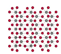 ![]() Top: Crystal structure of WTe2. Bottom: Single layer of WTe2 viewed from above. (W:gray, Te:red) | |