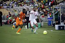 He reached also the quarter-finals of the competition after beating Algeria[55] and Zimbabwe[56] 4-2 before losing again in this round, this time against Burkina Faso 2–0.[57] The defeats in friendly matches against Cameroon[58] and Morocco[59] with the same result 1–0 led to the dismissal of Kasperczak. On 27 April 2017, Nabil Maâloul returned as coach despite the disapproval of the Tunisian supporters following the failure at the 2014 World Cup qualifiers, but this time he qualified Tunisia for the 2018 FIFA World Cup in Russia for the fifth time in the history of Tunisia and the first since 12 years after winning against DR Congo,[60][61] Guinea[62][63] and Libya[64][65] in the qualification. Tunisia's qualification for the 2018 FIFA World Cup and its positive results in the friendlies against Iran[66] and Costa Rica[67] led to its rise to 14th place in the FIFA World Rankings for the first time ever, after being first in African teams and surpassing teams like Italy and Netherlands. The team also continued its good results before the World Cup, with a draw with Turkey[68] and Portugal,[69] with the same score 2–2, in addition to a difficult defeat against Spain 1–0 in the 85th minute.[70] Despite this, in the World Cup, the performance of the team did not rise to the expected level, and was once again eliminated from the group stage after losing 1–2 against England because of Harry Kane's goal in the last minute[71] and a complete 2–5 thrash against Belgium,[72] before winning the last game 2–1 against Panama,[73] the first World Cup win for Tunisia since beating Mexico 3–1 in 1978. Thus, all the wins of Tunisia in the World Cup were against the CONCACAF teams. Because of this dismal performance, Tunisian squad was heavily criticized for its unpromising performance and the team's dubious record in World Cup, and fell out of top 20 teams on FIFA ranking.