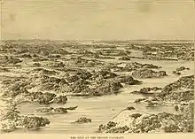 The timing of the invasion was dictated by the flooding of the Nile, as the Egyptians planned to sail supply ships up over the cataracts of the Nile, and the season where the river was high enough to allow this was limited. Ismail's forces used explosives to blow open a navigable waterway through the second cataract so his ships could pass through to the south.[18] As the army advanced, they received the submission of the kashif of Lower Nubia, which was only nominally subject to Ottoman rule, and when they passed the second cataract, the ruler of Say likewise submitted, although he later rebelled and was killed in fighting. The people of Say were descendants of Bosniak soldiery long ago posted there, and were described as 'white as the Arabs of lower Egypt'. At Dongola some of the Mamluks submitted, and others fled upstream to take refuge with Mek Nimr of Shendi.[4]