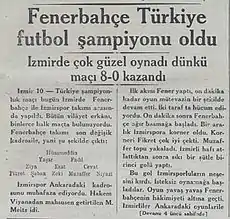 - "TamSaha dergisi – Memleketin ilk futbol birincisi" (in Turkish). Turkish Football Federation, Mehmet Yüce. p. 66. Archived from the original on 25 December 2017. Retrieved 27 December 2017.