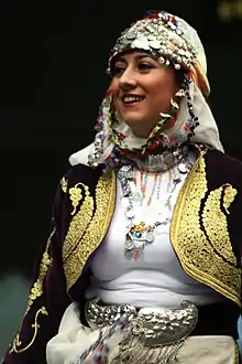 Turkish folk dress is a traditional style of clothing worn primarily in the rural parts of Turkey. Within the folk style of clothing are many variations based on region, gender, ethnicity, and class of the wearer.