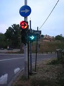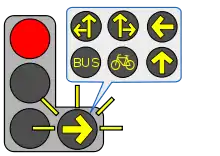 In Belgium, road signs that allow cyclists to turn right on a red light have been added to traffic law in 2012.[24] Such roads signs have been placed on intersections in the Brussels Capital Region.[25]
