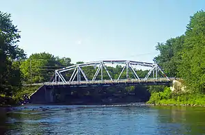 Tuthilltown Bridge is located in the Town of Gardiner in Ulster County, New York, United States, approximately 1 miles (1.6 km) west of the eponymous hamlet. It carries US 44/NY 55 across the north-flowing Wallkill River just downstream from where it is joined by the Shawangunk Kill, its largest tributary. It is a steel through truss bridge built in 1938 and reconstructed in 1993[1]