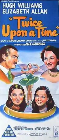 Twice Upon a Time is a 1953 British comedy film directed by Emeric Pressburger and starring Hugh Williams, Elizabeth Allan, Yolande Larthe, and Charmian Larthe. Based on the 1949 book Lottie and Lisa by Erich Kästner. It concerns twin sisters who are separated when their parents divorce. They meet again by accident when they are sent to the same summer camp, and they hatch a plan to reunite their parents.