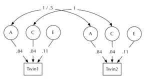 An example structural model (for the heritability of height among Danish males)[17] is shown: