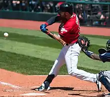 After the 2015 season, Naquin remained at the Indians' facility in Arizona to engage in strength training.[12] He competed for a spot on the Indians' 25-man roster during spring training in 2016,[14] and was named to the Opening Day roster.[15] Naquin was named the American League Rookie of the Month for June and July 2016.[16][17] On August 19, Naquin hit a walk-off inside-the-park home run to lead the Indians to a 3-2 win over the Toronto Blue Jays. He became the first Indians batter to hit a walk off inside-the-park home run since Braggo Roth, who accomplished the feat in 1916.[18] In 116 games, he hit .296 with 14 home runs, 43 RBIs and 18 doubles.