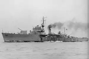 The Type D escort ships (丁型海防艦, Tei-gata kaibōkan) were a class of escort ships in the service of the Imperial Japanese Navy during World War II. The Japanese called them "Type D" coast defence ships, and they were the sixth class of Kaibōkan (Kai = sea, ocean, Bo = defence, Kan = ship), a name used to denote a multi-purpose vessel.[2] 143 ships were ordered under the 1943-44 Programme, and a further 57 units were planned (but never ordered) under the 1944-45 Programme, for an overal total of 200 ships. However only 67 were completed, with the remainder being cancelled.