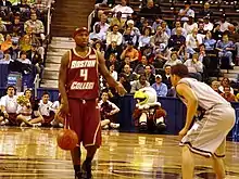 Rice signed his letter of intent to play basketball at and attend Boston College on April 28, 2005.[4] As a freshman (2005–06), Rice played in all 36 games, averaging 9.3 points, 1.4 rebounds and 2.5 assists per game.[3] He earned two ACC rookie honors: ACC Rookie of the Week on November 28, 2005 and was named to the ACC All-Freshman team.[5][6] In his sophomore season (2006–07), Rice started all 33 games, averaging 36.6 minutes a game. He finished the season with stats of 17.6 points, 3.4 rebounds and 5.4 assists per game. Rice was named to the All-ACC second team, and garnered All-Tournament honors for that season's ACC tournament. In two NCAA tournament games, Rice averaged 24 points.[3]
