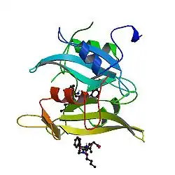 Tyrosine-protein kinase CSK also known as C-terminal Src kinase is an enzyme that, in humans, is encoded by the CSK gene.[5] This enzyme phosphorylates tyrosine residues located in the C-terminal end of Src-family kinases (SFKs) including SRC, HCK, FYN, LCK, LYN and YES1.[6][7]