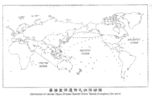 The sutra was translated a total of eight times from Sanskrit to Chinese between 679-988 CE.[1] It gained wide circulation in China, and its practices have been utilized since the Tang dynasty, from which it then spread to the rest of East Asia. The Uṣṇīṣa Vijaya dhāraṇī is associated with Mount Wutai, which in the Chinese Buddhist tradition is considered the bodhimaṇḍa of Mañjuśrī. Sacred stone tablets with the Uṣṇīṣa Vijaya dhāraṇī carved into them have been distributed widely in some regions of the Far East.[2]