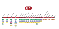 The U1 is a line on the Frankfurt U-Bahn. At the time of the line's inauguration in 1968, it ran from the south railway station to the Hauptwache and then continued along the Eschersheimer Landstrasse all the way up to Heddernheim and then continued to their terminus in Ginnheim.
