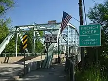 US 6 enters Pennsylvania from Ohio in Crawford County, heading southeast as a two-lane undivided road through farmland and woodland to the north of Pymatuning State Park, which is home to the Pymatuning Reservoir. The route heads into Linesville, where it heads southeast through developed areas of the borough on Penn Street before turning east onto East Erie Street, passing north of Conneaut Area Senior High School. The road continues southeast through more rural areas as it heads away from the state park, passing over the Canadian National's Bessemer Subdivision railroad line. US 6 intersects the southern terminus of PA 618 before it reaches a junction with PA 285 on the western edge of the borough of Conneaut Lake. Here, US 6 heads east for a concurrency with PA 285 and the two routes head east through the borough on Water Street. The road intersects US 322/PA 18 in the center of Conneaut Lake, where the two routes join US 6 and PA 285. A block later, PA 285 splits to the south. US 6/US 322/PA 18 become a five-lane road with a center left-turn lane and head east out of the borough, passing to the south of Conneaut Lake. PA 18 splits from US 6/US 322 by turning to the north, with US 6/US 322 continuing east-northeast on Conneaut Lake Road through farms and woods with some development. The road heads into a business area to the west of Meadville and comes to a roundabout with US 19 and the southern terminus of PA 98, at which point US 19 becomes concurrent with US 6 and US 322. The roadway becomes a four-lane divided highway and comes to a cloverleaf interchange with I-79. Past this interchange, the three routes reach an intersection with the southern terminus of PA 102 before curving north and entering Meadville upon crossing French Creek and a Western New York and Pennsylvania Railroad line. The road becomes French Creek Parkway and US 322 splits to the east, with US 6/US 19 continuing north through developed areas to the east of the railroad line. The two routes leave Meadville and narrow to a two-lane undivided road, passing through wooded areas with some fields and development as it follows the French Creek and the Western New York and Pennsylvania Railroad. In Saegertown, US 6/US 19 head north along Main Street and form a concurrency with PA 198, intersecting PA 198 at roundabouts on either end of town. The road continues northeast through more rural areas alongside the creek and railroad, reaching the borough of Venango. Here, the two routes head north on Church Street before turning east onto Cussewago Street and curving north onto River Street. US 6/US 19 run northeast through farms and woods with some development to Cambridge Springs. The two routes head northeast on Venango Avenue before intersecting the northern terminus of PA 86 and the western terminus of PA 408 in the center of town, where they turn onto North Main Street and continue northeast. US 6/US 19 reach a junction with the southern terminus of PA 99 before leaving Cambridge Springs and heading through rural areas.[1][7]