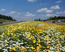 US 70 travels through several diverse regions in North Carolina, including the Bald and Black Mountains of Western North Carolina, the rural Foothills, the urban Piedmont, the farmlands of the Inner Banks, and the coastal communities of the Crystal Coast. All of US 70 east of Durham, and smaller segments including Statesville to Salisbury and Lexington to Greensboro, are listed in the National Highway System, a network of roads important to the country's economy, defense, and mobility.[2][3] US 70 also overlaps two state scenic byways: the Appalachian Medley, from Hot Springs to Walnut, and the Clayton Bypass Scenic Byway, from I-40 to US 70 Bus.[4]