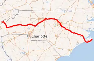 Route of US 70 in North Carolina highlighted in red | ||||