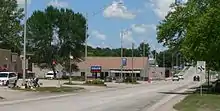 US 75 enters Nebraska along the Kansas state line south of Dawson in Richardson County. The highway travels north through agricultural fields the comes to an intersection with N-8. After crossing the south and north forks of the Big Nemaha River the highway enters Dawson a small village founded as Noraville in 1872 along the Atchison and Nebraska Railroad. The highway continues north out of Dawson and less than one mile (1.6 km) later has a junction with the northern terminus of U.S. Route 73. The highway then makes a sweeping turn to jog one mile (1.6 km) west before resuming a northerly course as it approaches an intersection with N-4. About four miles (6.4 km) later, the highway comes to a junction with N-62. Continuing due north, US 75 travels 10 miles (16 km) through the rolling hills of eastern Nebraska before entering the city of Auburn. Here, the highway has an intersection with US 136, the Heritage Scenic Byway. The highway continues north out of Auburn and travels five miles (8.0 km) before coming to an intersection with N-67. The two routes run concurrently for one mile (1.6 km) before N-67 diverges to the west towards Brock. US 75 maintains its northerly heading for the next eight miles (13 km) before transitioning to a divided highway at an intersection with N-128. The highway then travels past the Nebraska City Municipal Airport as it heads towards a junction with N-2 on the south side of Nebraska City. Here, a business route of US 75 continues north into the city while mainline US 75 turns westerly and runs concurrently with N-2 along the Julius Sterling Morton Beltway as the highway bypasses the city on the southwest side. West of the city, the two highways diverge as N-2 heads west towards Lincoln and US 75 resumes its northerly trek as a standard two-lane highway.[1][4]