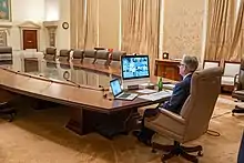 On January 27, then-acting chief of staff Mick Mulvaney convened a meeting with White House aides to draw greater attention to the virus among senior officials.[13] Two days later, on January 29, President Trump established the White House Coronavirus Task Force, led by Secretary Azar, to coordinate and oversee efforts to "monitor, prevent, contain, and mitigate the spread" of COVID-19 in the United States.[14][15][16] On February 26, Trump appointed Vice President Mike Pence to take charge of the nation's response to the virus.[17]