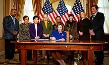 On January 14, President-elect Joe Biden introduced a $1.9 trillion relief plan which would include $1,400 direct payments,[lower-alpha 3][lower-alpha 4] increase weekly federal unemployment benefits to $400, extend eviction and foreclosure moratoriums through September, both increase the Child Tax Credit to $3,000 per child and make it refundable for 2021, and provide: $350 billion for state and local governments, $170 billion for schools, $50 billion for virus testing, and $20 billion for vaccines.[110] Biden has stated a goal of bolstering bipartisan support,[111] but Republicans have generally rejected the price tag.[112] Democrats plan to expedite approving the bill's cost (while leaving room to negotiate amendments) using the procedure of reconciliation—circumventing a filibuster.[112][113] The plan originally included an increase to the federal minimum wage to $15 an hour, but there was some debate about whether this would comply with the reconciliation-governing Byrd Rule;[113] on February 4, the Senate voted in favor of an amendment not to increase the minimum wage.[114] On February 2, the Senate passed a budget resolution along party lines.[115] The next day, the House voted 218–212 in favor of a budget measure, directing committees to begin drafting legislation.[116] On February 5, the Senate and House passed the budget plan in party-line votes.[117]