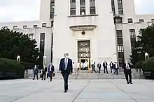 On October 2, 2020, both Trump and his wife tested positive for COVID-19 as part of a larger outbreak amid the White House.[250] While being treated at Walter Reed National Military Medical Center, Trump tweeted in support for more economic stimulus before halting and then reengaging talks.[251][252][253]