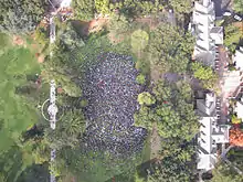 On November 21, Katehi attended a large student protest attended by an estimated 5,000 people.[73] After listening to their statements, Katehi said she was there to apologize.[74] On the following day, she stated that the police had gone against her specific orders to act peacefully when removing tents or equipment, and not to proceed if there were too many students, and she had not approved the police use of riot gear.[74][75] At a town hall meeting, she told around 1,000 students, "I want to unequivocally apologize to the entire community for the appalling use of pepper spray. I will do everything in my power to make sure nothing like that ever happens again." She said, "My instructions were for no arrests and no police force. I explicitly directed the chief of police that violence should be avoided at all costs."[76]