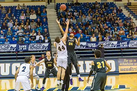 UC San Diego basketball plays its home games at RIMAC Arena in La Jolla. At the end of the 2007–08 season, they won the CCAA Tournament and advanced to the first round of the NCAA West Regionals. After a relatively dry spell, the team has seen most of its success in recent years under Eric Olen. In 2015–16, they were the NCAA West Region runners-up. The 2016–17 season was the first in which they won the CCAA regular-season title; they also won the CCAA Tournament and were again NCAA West Region runners-up.[3] The team won the CCAA Tournament again in 2017–18, but dropped in the NCAA West Regional quarterfinals. The Tritons have the most CCAA Tournament titles of any current CCAA member school, with three.