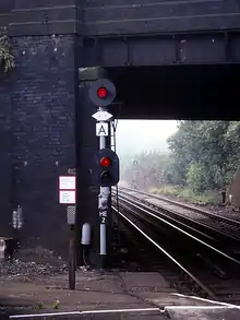 - "Master Rulebook: Signals, hand signals, indicators and signs handbook. Section 2.7 "Position Light Signals"" (pdf). Network Rail. Retrieved 30 August 2020.