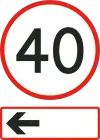 This example is displaying a maximum permissible speed of 40 mph (64 km/h) only for the diverging route to the left. Unless otherwise indicated with another sign, this does not apply to the current route.