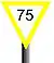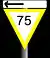 These indicators warn the driver of a lower speed limit on a route diverging ahead. This example is displaying a maximum permissible speed of 75 mph (121 km/h) on the left diverging route. These warnings are provided whenever there is a reduction of permissible speed of a third or more, and, again, are placed at the service braking distance from the start of the lower speed.