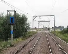 A Blanket speed restriction is used when it is necessary for trains to run more slowly over a large area.[14] This is commonly used for weather conditions such as high winds, high temperatures or snow. No trackside signs are put out for a Blanket speed restriction, which enables it to be imposed quickly. Initially train drivers are informed directly by the signaller, and information is faxed to drivers' booking on points where it is posted on the Late notice board.[15]