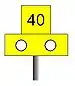The number below the line always shows a higher speed and applies to passenger trains, parcel and postal trains and light locomotives, while the top number applies to all other trains.[12] This example therefore is displaying a maximum permissible speed of 70 mph (110 km/h) for passenger trains, parcel and postal trains and light locomotives, in addition to a maximum permissible speed of 40 mph (64 km/h) for all other trains.