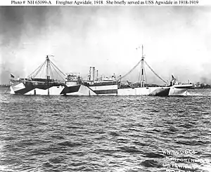 At noon on 11 April 1919, Agwidale was decommissioned and turned over to representatives of the United States Shipping Board, a civilian crew replacing a token Navy one the following afternoon. Agwidale retained her name for the rest of her days under American registry, which extended through the depression years and World War II. Initially operated by the Clyde Steamship Co., she later worked under the flag of the Clyde Mallory Line, and, still later, Agwilines Incorporated, until she was sold to Chinese interests in 1946 and renamed Wei Ming. Her subsequent fate is a mystery.