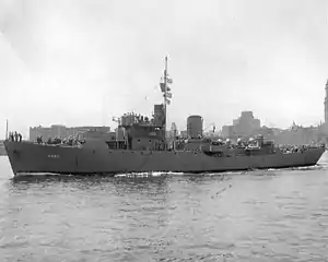 | Armament: | two 3 in (76 mm) dual purpose gun mounts, two 20 mm gun mounts and two depth charge tracks |
