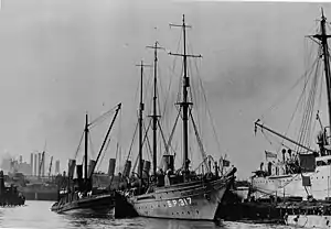 Aloha was built as a private steel-hulled, single-screw, bark-rigged steam yacht in 1910 by the Fore River Shipbuilding Company at Quincy, Massachusetts, for "Commodore" Arthur Curtiss James (1867–1941), an industrialist, railroad magnate, and yachtsman. She was the second yacht of the name built for James,[1] was designed for ocean cruising, and had a large crew of 39. For her maiden voyage in 1910, James took her to England and Scotland. In 1911 he sailed her to Panama and Ireland, and to Egypt and the Near East in 1912 and 1913. The outbreak of World War I in Europe in July 1914 curtailed his voyages.