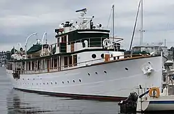 Infanta was designed by Ted Geary and built by the Craig Shipbuilding Company in Long Beach, California for John Barrymore as a present to his wife, actress Dolores Costello.[2] The keel was laid on 15 September 1929, launched on 16 January 1930 and named in honour of the couple's expected first child, Dee Dee Barrymore.[2] The motor yacht was originally measured as 118 feet in length and with a tonnage of 253 GRT. Power was from two 275bhp Atlas-Imperial diesels driving twin propellers[1][3][4] The Barrymores used the yacht sparingly, due to his preference for the simpler pleasures of his sailboat and his increasing alcoholism.[2] By 18 July 1935 Infanta composed most of Barrymore's net worth, being assessed at $56,350 of his net $56,575.[5] In 1937 the yacht, then valued at $75,000 was auctioned to satisfy a mortgage.[6] The yacht was subsequently renamed Polaris by owners Edward and Kathryn Lowe of San Francisco and home-ported at Juneau, Alaska.[4][7]