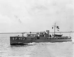 Contemporary Navy data shows the vessel had a 1,000 gallon fuel capacity for a cruising range of 400 nautical miles at a cruising speed of 25 knots (29 mph; 46 km/h) powered by two Dusenberg six cylinder engines driving two propellers.[5]