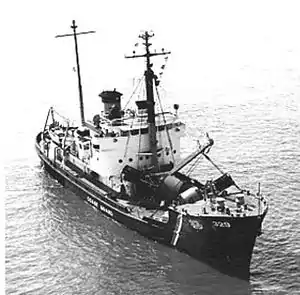 During the end of February 1968 to 1 March 1968 Ivy waited out a storm at anchor in Willapa Bay, Washington. On 1 March 1968 she was called to assist the Japanese M/V Suwaharu Maru carrying a cargo of logs and the Liberian M/V Mandoil II carrying a cargo of naptha which had collided 340 miles from Columbia River Bar off the Oregon coast. Due to heavy seas Ivy was underway to the scene for nearly 24 hours. In heavy seas, darkness and a snow storm Ivy rescued 68 crewmen from the Japanese vessel, which had jettisoned logs in an effort to stay afloat. Floating logs destroyed one of Ivy's lifeboats, however no men lost were lost. The Liberian tanker of naphtha exploded and burned; the entire crew perished. The Ivy was relieved by USCGC Modoc (WATA-194) and transported the Japanese crew to Astoria, Oregon. Two merchant vessels also participated in the rescue: MV Kure Maru and MV Transoneida. [5]