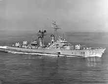 USS Barry (DD-933) was one of eighteen Forrest Sherman–class destroyers of the United States Navy, and was the third US destroyer to be named for Commodore John Barry. Commissioned in 1954, she spent most of her career in the Caribbean, Atlantic, and Mediterranean, but also served in the Vietnam War, for which she earned two battle stars. Another notable aspect of her service was the Cuban Missile Crisis in 1962.