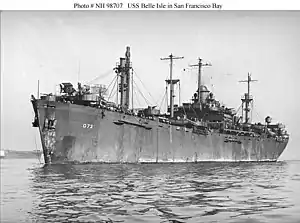 USS Belle Isle (AG-73/AKS-21) was a Basilan-class miscellaneous auxiliary acquired by the U.S. Navy during World War II. Belle Isle was configured as a repair ship and used in Pacific Ocean operations. At war’s end she was converted to a stores ship before being finally decommissioned.
