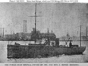 On 14 May 1917, the U.S. Navy acquired Beluga under a free lease from her owner, Mr. J. Henry Herring of New Bedford, Massachusetts, for use as a section patrol vessel during World War I. She was commissioned as USS Beluga (SP-536) on 15 May 1917.