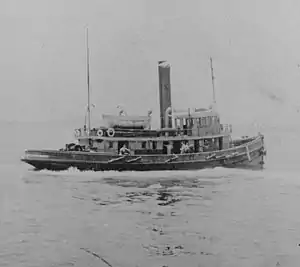 Robert Rogers was fitted with a second-hand engine taken from another, smaller Rogers Company tugboat, Maria Hoffman, as this engine had proven "too powerful" for the latter vessel.[3] Hoffman's engine was fitted to Robert Rogers by Schantz & Eckert of Perth Amboy, after which the same company installed a new engine in Maria Hoffman.[3][lower-alpha 1] Robert Rogers' original service speed is not known, but in later naval service, the tug's speed was recorded as 10 knots (12 mph; 19 km/h).[1]