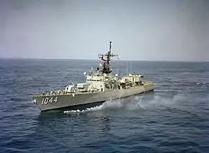 USS Brumby (FF-1044) was a Garcia-class destroyer escort (and later a frigate) in the US Navy. She was named after Admiral Frank H. Brumby. The ship was in US Navy service from 5 August 1965 to 31 March 1989 and was in Pakistan Navy service from 1989 to 1994 as Harbah.