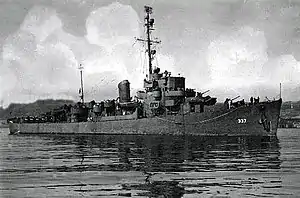 USS Dale W. Peterson (DE–337) was an Edsall class destroyer escort, the first United States Navy ship so named. This ship was named for Ensign Dale William Peterson (18 November 1919 – 8 May 1942), who was awarded the Navy Cross for distinguished service in intercepting enemy bombers attacking his carrier 20 February 1942, and was posthumously awarded the Distinguished Flying Cross for his actions during the Battle of the Coral Sea.