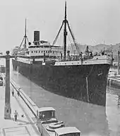 At least three round trips between New York and South Africa were completed by Eten to June 1920, the third of which was to Cape Town.[20] In April of the same year, Australia's Daily Commercial News and Shipping List described Eten as "a fine type of the combined passenger and cargo boat. She is very comfortably fitted in all respects. The cabins are spacious, while the drawing, smoking and other lounge rooms suggest that the vessel was originally designed for trade in the tropics."[21] The paper reports that while Eten's operators were readily filling the ship's 80 passenger berths, making the South African experiment "successful enough to warrant continuance", cargoes in both directions had been light, prompting the USSB to consider expanding Eten's passenger accommodations from 80 to 360.[21] One factor discouraging such work, however, was the ship's speed of "only a little above the old twelve knots an hour."[21] The USSB was also said to be considering purchasing the vessel from the Peruvian government.[21] It is not known whether Eten's passenger accommodations were ever expanded as proposed, but Eten was not purchased by the USSB and continued to operate under the Peruvian flag.[22]