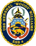 USS Hershel "Woody" Williams (ESB-4) (formerly USNS Hershel "Woody" Williams (T-ESB-4)) is a Lewis B. Puller-class expeditionary mobile base, currently in service with the United States Navy. The ship is also a sub-variant of the Montford Point-class expeditionary transfer dock (ESD).[10] The ESDs are operated by the Navy's Military Sealift Command with predominantly civilian crews, while the ESBs, owing to the nature of their operations, have been commissioned and commanded directly by the U.S. Navy. The ship was named in honor of Hershel W. "Woody" Williams in an announcement by then-Secretary of the Navy Ray Mabus, on 14 January 2016. Williams is a Marine who earned the Medal of Honor in the Battle of Iwo Jima, during World War II.[11]