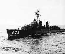 ![]() USS Hickox (DD-673) underway in 1943 | |