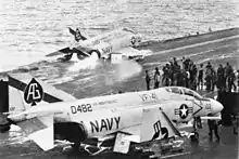 Pilots of VMA-142, -131 and -133 began qualification landings in A-4 Skyhawks aboard Independence on 3 August 1971. For the next three days, four active duty and 20 reserve pilots operated aboard the carrier —the first time that Marine Corps Reserve squadrons qualified in carrier duty.